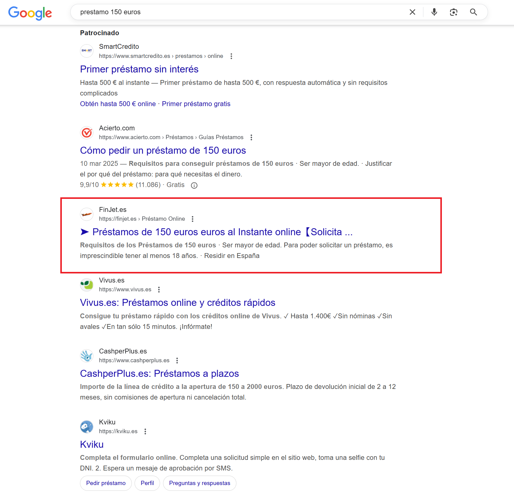 Aumentar la visibilidad en las búsquedas relacionadas con préstamos de entre 50 y 1500 euros, compitiendo con actores ya consolidados del sector.