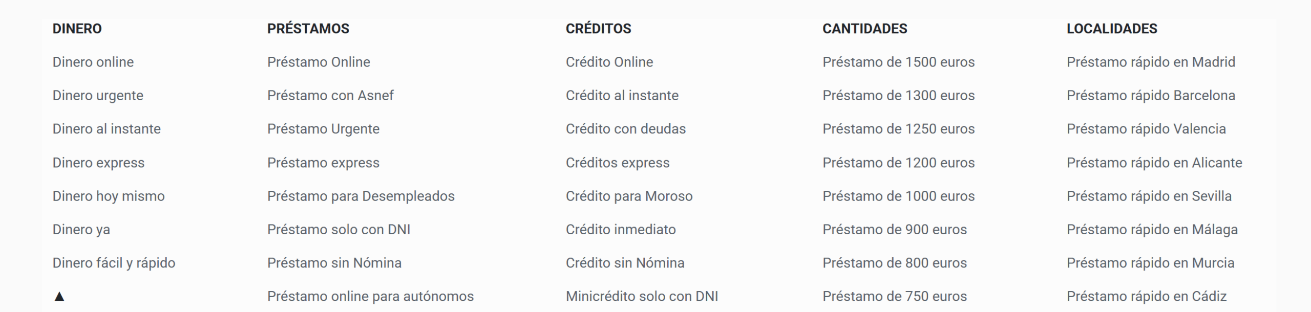 Artículos de blog enfocados en keywords informacionales: como cómo conseguir un préstamo con ASNEF o qué necesito para un préstamo urgente. Estos contenidos cumplen un doble objetivo: captar tráfico cualificado desde Google y guiar al usuario hacia la conversión de manera más natural y progresiva.